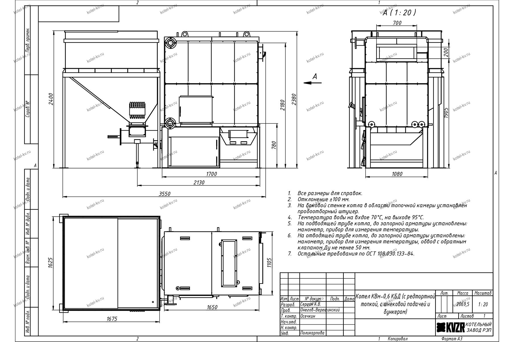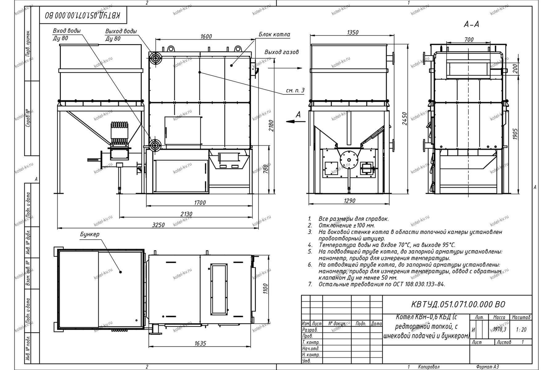 Конструкция автоматического котла на угле 600 кВт